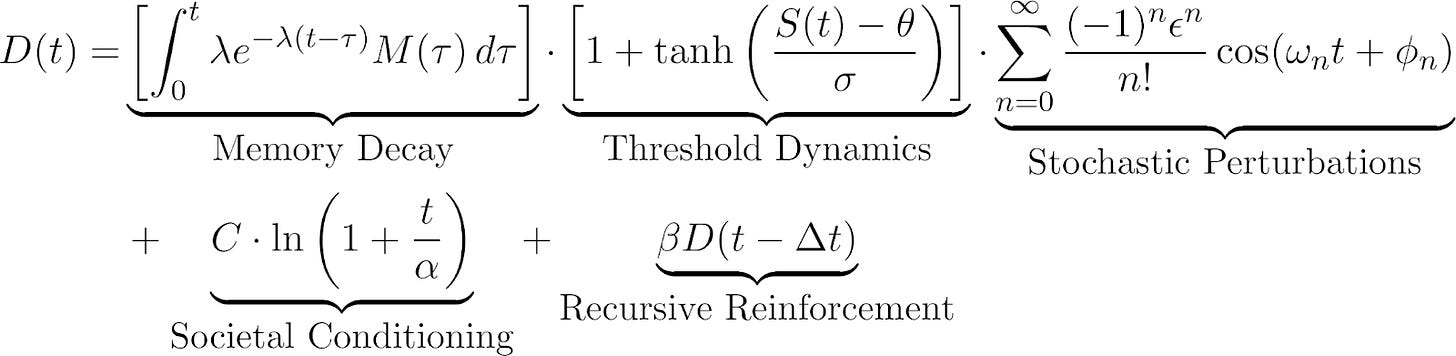 β, Δt: Recursive self-reinforcement (habit-forming feedback loop)